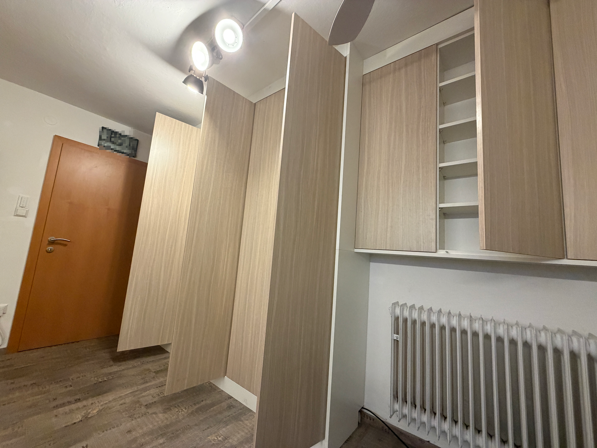 In diesem Projekt wurde der vorhandene Raum durch eine maßgefertigte Schranklösung komplett neu strukturiert und hochwertig ausgebaut. Die zuvor uneinheitliche und ungenutzte Wandfläche wurde durch eine moderne, flächenbündige Schrankwand ersetzt, die nicht nur großzügigen Stauraum bietet, sondern auch optisch für Ruhe und Ordnung sorgt.